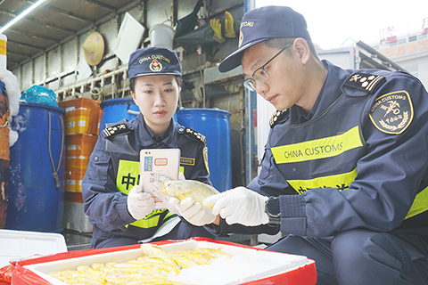 「過年我們更得守在這裡,保障供港澳民生物資通關順暢、不斷檔。」香洲海關查檢科副科長邱晨回顧假期,很是充實。「大年初一擬制證書,大年初二現場查驗……」這是邱晨在他鄉度過的第十個春節,她和同事們提前做好準備,圍繞節前企業生產和出貨特點,加強風險監測和品質安全監管,同時主動對接企業需求,針對春節期間出貨集中的情況,合理安排查驗和通關流程。◇