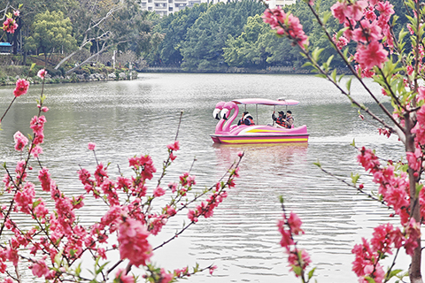 福建福州:民眾周末樂享好時光 2026-03-09 03:30:00 ◎ 三月八日,福建福州,市民在西湖公園划船。正值周末,當地民眾走出家門,或逛街休閑,或踏青賞花,盡情感受春日裡的美好與愜意。(中新社記者王東明 攝)