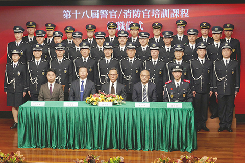 在保安範疇官員培育方面,「第十八屆警官/消防官培訓課程」,三十名學員經歷四年多的日子,現已完成了學習和實習階段,迎來職業生涯的新開始。其中,二十名學員獲授予「警務科學學士學位」,就職成為副警司;十名學員獲授予「防護及安全工程學士學位」,就職成為副一等消防區長。