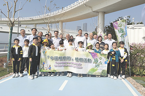 【專訪】為響應三月十二日中國植樹節,市政署昨於南岸海濱綠廊舉辦植樹活動,行政法務司司長黃少澤、司長辦公室主任曾翔、市政署市政管理委員會主席周偉迎、市政諮詢委員會主席許樂敏等嘉賓聯同近六十名師生,一起種植苗木以美化澳門海岸,共同倡導「愛綠、植綠、護綠」的理念。