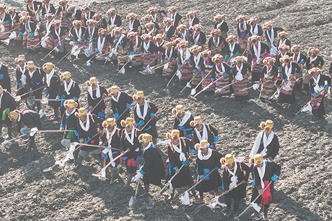 西藏「第一塊農田」舉行春耕儀式 2026-03-17 03:30:00 ◎ 三月十六日,西藏山南市乃東區門中崗社區村民身著盛裝,按照傳統習俗,手捧青稞酒,在雍布拉康宮殿腳下的西藏「第一塊農田」舉行春耕儀式,播下今春第一粒種子。圖為西藏山南市乃東區門中崗社區春耕儀式現場。(無人機照片)(中新社記者 貢嘎來松 攝)