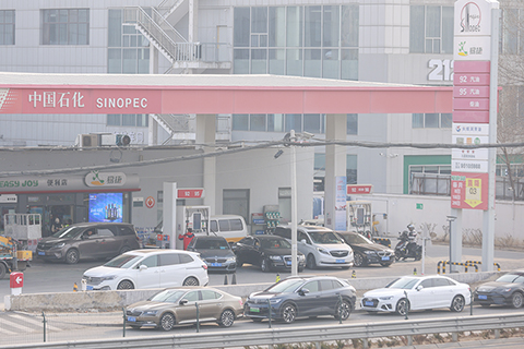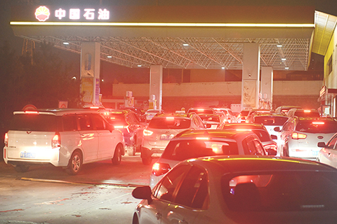 ◎ 三月二十三日,在北京通州一加油站,車輛排隊加油。當日,中國國家發展改革委發佈消息,三月九日國內成品油價格調整以來,受美以伊衝突加劇影響,國際市場原油價格大幅上漲。為減緩國際油價異常上漲帶來的衝擊,減輕下游用戶負擔,保障經濟平穩運行和社會民生,在保持現行價格機制框架的基礎上,對國內成品油價格採取臨時調控措施。根據現行價格機制計算,自三月二十三日二十四時起,國內汽油、柴油價格(標準品)每噸分別應上調二千二百零五元(人民幣,下同)、二千一百二十元,調控後實際上調一千一百六十元、一千一百一十五元。(中新社)