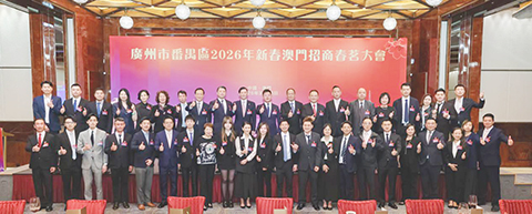 在春茗大會前,舉辦了二0二六年番禺區澳門全球招商大會,區領導陳小華、覃海深、陳建任、李道明、楊少華出席。會議由楊少華副區長推介番禺區投資營商環境,澳門招商投資促進局梁華峰委員致辭,大豐銀行董事長何浩生等十一名嘉賓發言,澳門中華總商會、澳門廣州青年社團總會、澳門番禺同鄉會獲授牌聘為番禺區招商顧問單位。活動期間,番禺區相關領導帶隊走訪了新康恒集團等澳門相關重點企業,並與澳門番禺同鄉會骨幹成員座談交流。◇