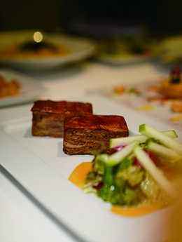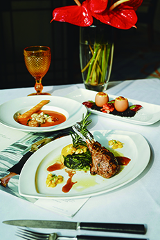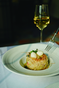 除了套餐外,花道葡萄牙餐廳由即日起至四月五日期間供應,同步推出限定單點菜菜式。首推香煎帆立貝蘑菇泡芙卷配龍蝦忌廉汁(MOP100),帶子鮮甜,佐以十多種材料熬製的濃郁醬汁,滋味沒法擋。烤羊排配粟米菠菜蓉(MOP280)外層香脆且肉汁豐富,佐以菠菜蓉。另一道充滿節慶氣氛的馬介休雀巢配復活節嫩蛋(MOP200),將醃製入味的馬介休與鵪鶉蛋放置於精緻雀巢造型炸麵上,顏值與風味兼備。最後,餐廳結合傳統與創意泡製了兩款精緻甜品,分別是復活蛋焦糖布丁(MOP90元)和香橙酒朱古力咖啡慕絲伴馬斯卡邦尼芝士(MOP90元)。