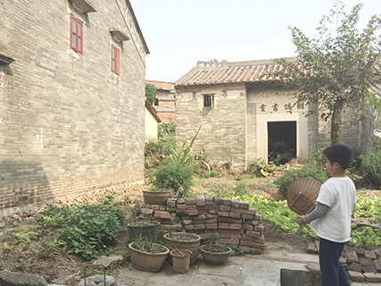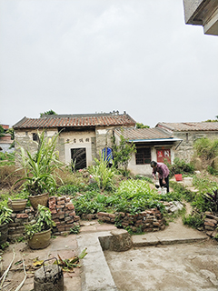 從村口起步,走過被歲月磨得圓潤的青石板路,在一格又一格的正方形小菜田間的泥道小徑留下深深淺淺的腳印後,便來到曾袓母居住的青磚小房。推開老式櫳門,「吱呀」一聲,像是驚醒了沉睡多年的時光。陰涼昏暗的小客廳,擺放著竹椅和木茶几,祖先牌位立於神檯上,一束光柱從屋頂的明瓦(天窗)投下來,斜斜地落在棕紅色地磚上,塵埃緩緩飄浮於光柱中,彷彿時間的碎屑在無聲舞動。