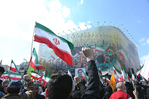 ◎ 四月一日,在伊朗首都德黑蘭革命廣場,民眾參加為伊朗伊斯蘭革命衛隊海軍司令坦格西里、伊朗武裝部隊總參謀長顧問賈姆希德.埃哈基及伊朗武裝部隊軍事人員舉行的告別儀式。(新華社記者 沙達提 攝)