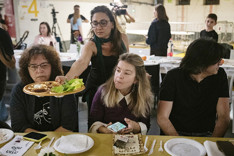 以色列特拉維夫:防空設施中的逾越節 2026-04-03 03:30:00 ◎ 逾越節是猶太人一年一度的重要節日,紀念古代猶太人逃離埃及重獲自由。猶太人在逾越節期間不吃任何發酵食物,改食一種專門的「無酵餅」。按照猶太歷,今年逾越節從四月一日持續至八日。隨著美以伊戰事持續,部份以色列人選擇在防空設施內迎來逾越節。圖為一日,在以色列特拉維夫的一處地下防空設施,人們參加逾越節晚餐儀式。(新華社記者 陳君清 攝)