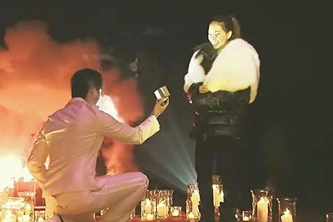 ◎ 著名歌手周杰倫日前才透露會公開求婚昆凌的影片,隨著新歌〈IDo〉MV釋出,十一年前的求婚影片也曝光,充滿儀式感的求婚過程、婚禮派對的盛況加上浪漫煙花,甜蜜指數爆表,周杰倫說:「過了這麼久,終於把這段屬於自己的回憶和你們分享。」(香港中通社圖片)