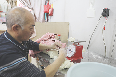 與寡言少語的丈夫不同,方新梅要熱絡些。這位一九九六年嫁來台灣的湖北女子,鄉音早已淡去。「剛嫁過來時,我看這個東西硬得像石頭,怎麼吃嘛。」方新梅說,從老一輩手中接下手藝後,在日復一日的製作中,她逐漸愛上了「杠子頭」的堅硬和麥香。