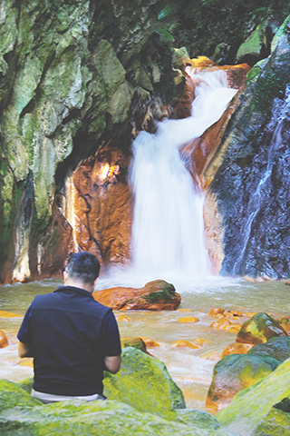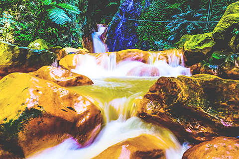 台灣台北陽明山上的「翠峰瀑布」位於磺溪上游的松溪上。松溪的石頭經年累月受硫磺氣體熏陶,氧化或硫化之後,石頭上常會有黃褐色或紅褐色的附著,而有「黃金河岸」之稱。
