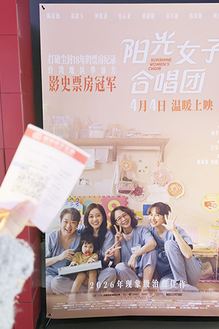 周杰倫2026世界巡迴演唱會 台灣電影登陸 台灣舞台劇三人飾九角 《銀錠橋》演繹市井人生 陳自瑤連詩雅黃翠如低谷時互相扶持 《家家有本事》講解胃腸鏡檢查 梁朝偉相隔18年再赴韓宣傳新作 蘇永康賀老婆入五搞Party星光強勁 《正義女神》演員落力演出好戲連場 台灣電影登陸 2026-04-06 03:30:00 ◎ 4月4日,台灣電影《陽光女子合唱團》正式在大陸上映,民眾前往影院觀影。(香港中通社)