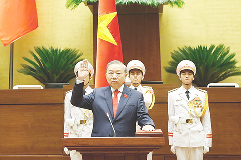 蘇林當選越南國家主席 2026-04-08 03:30:00 ◎ 經越南第十六屆國會第一次會議4月7日投票表決,越南共產黨中央總書記蘇林當選越南國家主席。圖為當日,在越南首都河內,蘇林宣誓就任越南國家主席。(新華社/越通社)