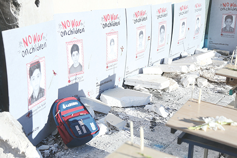 ◎ 4月6日,伊朗政府在德黑蘭舉行活動,悼念遭美以空襲遇難的米納卜小學學生,強烈譴責美以襲擊伊朗學校和學生的行為。2月28日,在美國和以色列對伊朗發動的軍事行動中,伊朗南部米納卜市的一所小學遭空襲。伊朗方面表示,空襲造成至少175人死亡,其中大部分是兒童。圖為6日,在伊朗首都德黑蘭市舉行的悼念活動現場,組織者搭建起小學教室遭襲場景並擺放遇難兒童照片,悼念遭美以空襲遇難的米納卜小學學生。(新華社記者 沙達提攝)