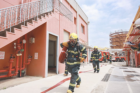 【特訊】為加強消防局與澳門電力股份有限公司在發生事故時的應變措施及協調溝通,消防局於昨日上午,聯同上述公司在路環九澳發電廠內舉行聯合消防演習。