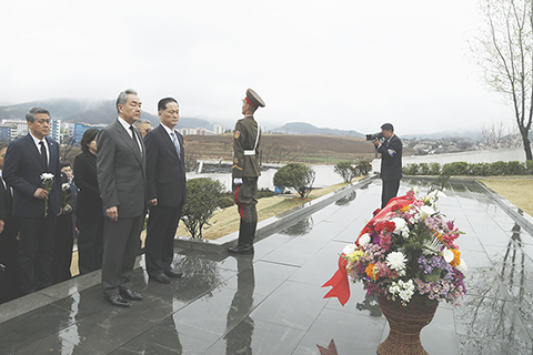 王毅祭掃江東郡中國人民志願軍烈士陵園 2026-04-11 03:30:00 ◎ 四月十日,正在朝鮮訪問的中共中央政治局委員、外交部長王毅專程前往平壤東部江東郡祭掃中國人民志願軍烈士陵園,深切緬懷犧牲在朝鮮大地的中國人民志願軍英烈。(新華社記者 王超 攝)