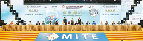 近一百二十個文旅相關機構及社團於本月十一日在旅博會場館內舉行簽約儀式,推進澳門與來自不同國家及地區業界之間的業務合作。現場共簽訂六十份合作項目,涵蓋APEC賦能、旅拓全球、數智旅業、一展兩地、醫旅融合和絲路建設六個組別。旅遊局局長文綺華、澳門中聯辦經濟部副部長楊全州及澳門旅行社協會會長劉雅煌共同見證簽約儀式。