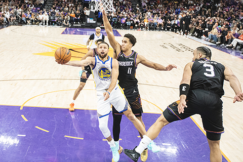 積倫格連表現神勇,進帳全場最多的36分,20次起手14中,3分球14投8中,迪雲布加就貢獻20分;勇士射手、38歲的史提芬居里表現一般,全場16投僅得4中,取得17分。