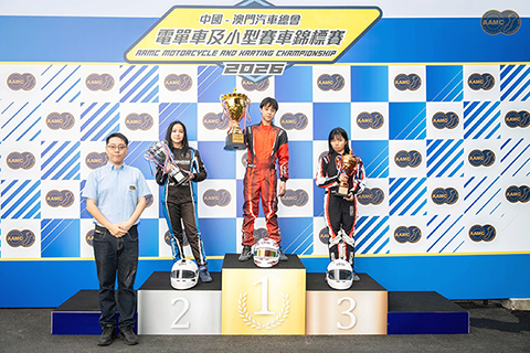 ◎ 中國澳門汽車總會電單車及小型賽車錦標賽昨日各組頒獎。