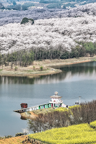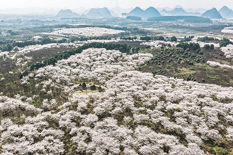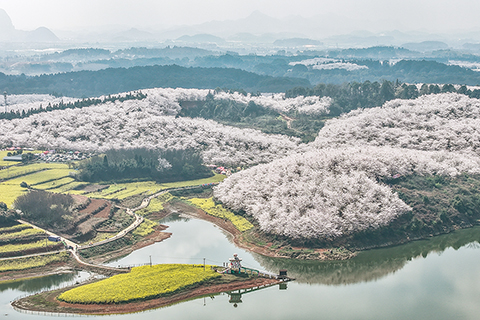 貴州:櫻花似海 春滿大地 2026-04-25 03:31:00 近日,隨著氣溫回升,貴州省貴安新區櫻花園內的二點四萬畝櫻花迎來盛花期。如雲似霞的櫻花和山川、湖泊、民居構成一幅幅美麗的春日畫卷,吸引眾多遊客前來觀光遊玩。(新華社記者 陶亮 攝)