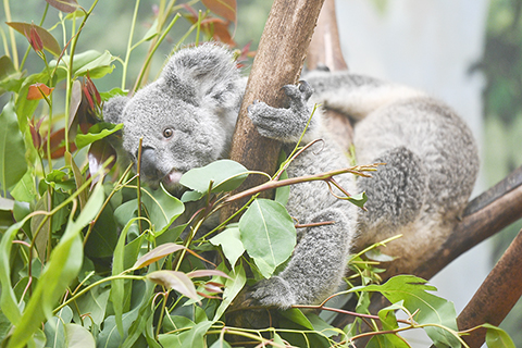 ◎ 四月二十七日,廣州長隆野生動物世界舉行「考拉二十周年歡聚慶典」活動,發佈考拉野化放歸計劃,未來將把經過野化培訓並考核合格的考拉,放歸至澳大利亞原生棲息地。二00六年四月二十七日,來自澳大利亞黃金海岸可倫賓野生動物保護區的六只考拉抵達廣州長隆,經過二十年繁衍,目前長隆考拉種群已發展至八十餘隻,成為澳大利亞以外規模最大的考拉保育種群。圖為生活在長隆的考拉。(中新社記者 陳驥旻 攝)