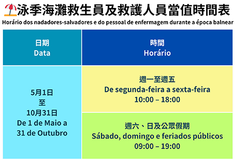 預料勞動節假期期間海灘人流增多,海事局呼籲市民出行前,先透過海事局網頁或“澳門海事”APP了解海灘實時的環境、旗號信息和人流量,適當安排出行計劃。◇