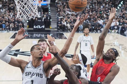 【特訊】美國NBA季後賽,東岸首圈賽事,昨早聖安東尼奧馬刺114:95,擊敗波特蘭拓荒者,贏場數4:1,9年來首度闖入4強。
