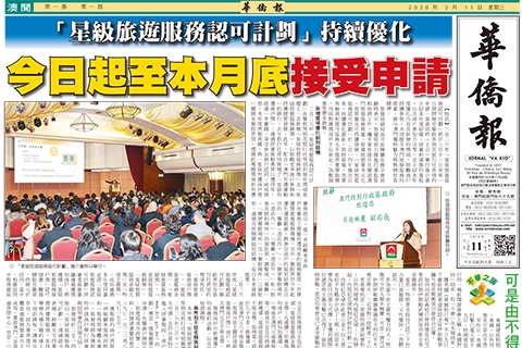 【特訊】二0二六年「星級旅遊服務認可計劃」將於三月十一日至卅一日期間接受餐飲界別及旅行社界別的申請。旅遊局昨(十日)舉行推介會介紹本年度招募、評審和頒獎的進程,以及商戶參加方法等,並介紹本年度優化內容及新增的獎項,鼓勵商戶持續參與,共同提升澳門旅遊服務的質素,展示澳門獨特魅力與熱情好客精神。 旅遊…