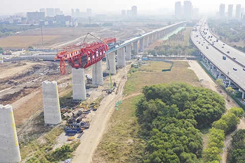 深江鐵路跨沿江高速特大橋移動模架現澆…