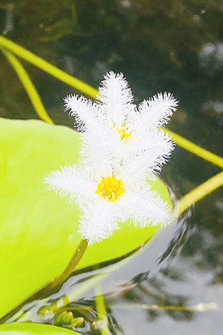 一葉蓮又稱「印度蓮」,花語意為「怡然自得」,為睡菜亞科莕菜屬,原產地為熱帶及亞熱帶。