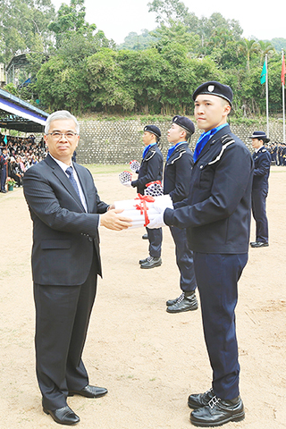 畢業典禮於上午十一時三十分舉行,保安司司長黃少澤親臨主禮,向學員頒發畢業證書,並與嘉賓向成績優異的學員頒發最佳學員獎、中文獎、葡文獎、射擊獎、體育獎和越野跑獎項。澳門保安部隊高等學校校長黃子暉致辭時向學員寄予厚望,作為保安部隊人員要堅守警察信念,不要輕易動搖意志,忠誠履職,奉行保安當局提出的三個警務理念:「主動警務」、「社區警務」和「公關警務」,才能在變幻莫測的社會中,臨危不亂、在崗位上發揮專業,保持警察的操守,做好警務工作。