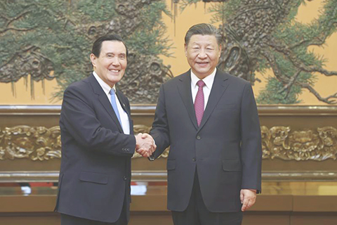 馬英九再訪大陸 ◎ 二零二四年四月,台灣地區前領導人馬英九再次訪陸,進行祭祖尋根與文化交流,訪問行程覆蓋廣東、陝西、北京等地,旨在促進兩岸關係和平發展,引起廣泛關注。十二月十八日至二十六日,馬英九率」大九學堂」的台灣青年學子,赴黑龍江出席」海峽兩岸青年冰雪節」活動並到四川成都參訪,促進了兩岸青年交流,馬英九強調一個中國原則和九二共識,反對台獨。圖為四月十日下午,中共中央總書記習近平在北京會見馬英九一行。(新華社記者鞠鵬 攝)