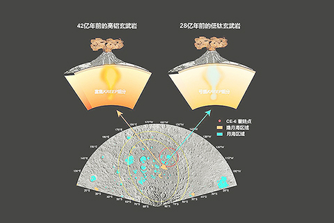 嫦娥六號月壤首批研究成果發佈 ◎ 十一月十五日,中國科學院發佈嫦娥六號月壤首批研究成果,圖為嫦娥六號採回月壤樣品中記錄的兩期玄武質火山活動及其月幔源區性質示意圖。(中國科學院供圖)