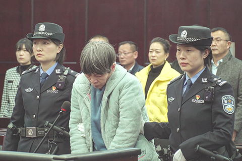 余華英拐賣兒童案二審維持死刑判決 ◎ 十二月十九日,余華英(前中)在庭審現場(視頻截圖)。十二月十九日,貴州省高級人民法院二審公開開庭審理余華英拐賣兒童上訴案,並于當日宣判。裁定駁回上訴,維持原判,對余華英的死刑裁定依法報請最高人民法院核准。(新華社發)