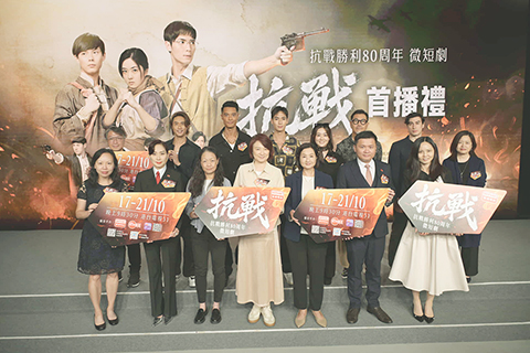 今年是中國人民抗日戰爭暨世界反法西斯戰爭勝利80周年,香港電台(港台)與政府新聞處特別聯合製作微短劇《抗戰》,邀請多位年輕演員參與演出,透過緊湊而感人的劇情,緬懷艱苦的抗戰歲月,同時弘揚愛國精神,提醒大家珍視和平。在10月17日舉行的《抗戰》首播禮上,廣播處長關婉儀、政府新聞處處長廖李可期,聯同愛國主義教育工作小組組長李慧琼一同主持啟播儀式,還與一眾出席演員,包括:楊天宇、林沚羿、黎振燁、李善恆、何華超及莫浩峰,率先觀看《抗戰》的精彩內容,第一時間分享觀後感。廣播處長關婉儀、政府新聞處處長廖李可期在致辭時分別提到,今次是首度採用微短劇