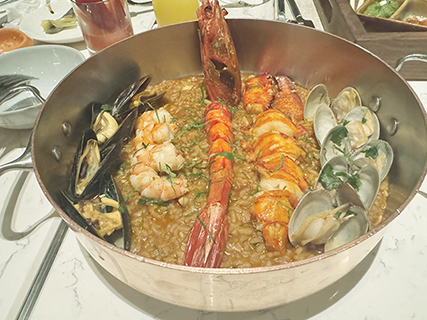但實際品嘗後,卻難掩失望。作為澳門人早已吃慣的葡式牛扒,當日的出品鹹度誇張,完全掩蓋了肉質本身的風味,而薯仔切片在加上醬汁後同樣鹹得令人吃不下嚥;招牌葡式龍蝦海鮮飯更是本末倒置,雖用上龍蝦等貴價食材,卻沒能做好海鮮飯最基礎的口感要求,唯一是將多種級海鮮結合了,肥膩感覺十足。中式的竹笙勝瓜黃魚羹與海南雞飯,則更像是酒店中央廚房的批量出品,缺乏真正誠意的廚藝在內。一餐下來,筆者只希望這不是每日的正常做法,而是剛好遇上失準之作。