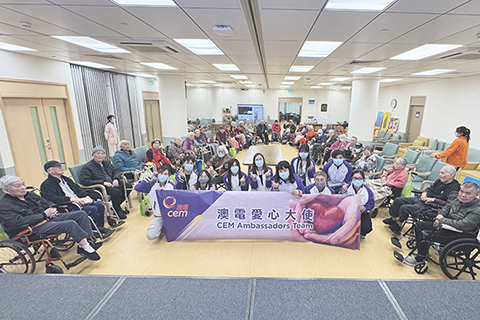 除了物資捐贈,澳電人力資源及可持續發展部總監陸希蕾和監管事務及企業傳訊辦公室高級經理阮少寶,連同八位澳電愛心大使於日前往恩暉長者綜合服務中心探訪三十位「老友記」,與他們親切交流,傾聽他們的生活點滴,並一同參與互動遊戲,現場洋溢歡樂氣氛。愛心大使們更精心準備實用禮物,向長者表達誠摯的問候與關懷,叮囑他們注意保暖,保重身體。