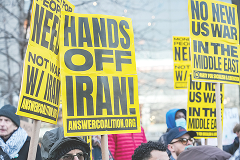 美國多地民眾集會抗議對伊朗動武 2026-03-04 03:30:00 ◎ 美國紐約、三藩市、洛杉磯、芝加哥、亞特蘭大等主要城市的民眾三月二日傍晚舉行遊行集會,抗議美國對伊朗發動軍事打擊,要求特朗普政府停止針對伊朗的戰爭行為。圖為當日,人們在美國紐約參加集會,抗議美國對伊朗發動軍事打擊。(新華社發 章正浩 攝)