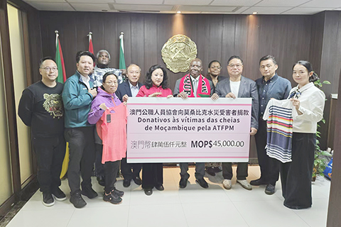 姍桃絲表示,一方有難,八方支援,莫桑比克的嚴重洪災牽動著澳門各界的心,本次募捐行動得到了協會會員的踴躍響應與積極參與,充份體現了澳門公職人員協會會員的社會責任感與國際胸懷。公職人員協會今後仍會為莫桑比克水災的實物捐贈及善款籌募提供援助。