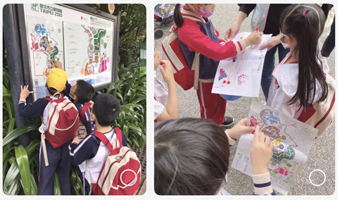 在今天的主題課上,我們先帶領孩子快速回顧昨天學習的內容,地圖上會有哪些標示?它們的作用是甚麼?我們會在甚麼時候需要用到等等;之後讓孩子學習計畫屬於自己小組的參觀動物園路線。老師亦提醒孩子們動物園非常的大,沒辦法每個地方都去,中間也需要吃飯、休息、上廁所等。每個孩子都很興奮地和組員討論,並且在過程中我們看見各組孩子針對自己的計劃,有很多想法上的交流,也有意識到我們在課堂中提到逛動物園時間有限,而把計劃調整得更合適,真的是表現得太棒了!