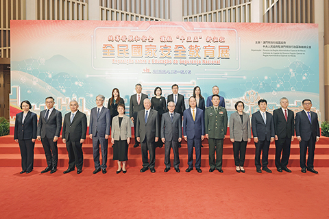 澳門特別行政區政府與中央人民政府駐澳門特別行政區聯絡辦公室合辦的全民國家安全教育系列活動,昨傍晚在中國與葡語國家商貿合作服務平台綜合體舉行開幕式,並舉行徵文和短視頻比賽頒獎典禮。並由岑浩輝,全國政協副主席何厚鏵,中央港澳辦副主任、國務院港澳辦副主任、中央政府駐澳門聯絡辦公室主任、澳門特別行政區維護國家安全委員會國家安全事務顧問鄭新聰,外交部駐澳特派員公署特派員卞立新,中國人民解放軍駐澳門部隊司令員陳文勝主禮,出席的政府官員及社會各界人士約四百八十人。
