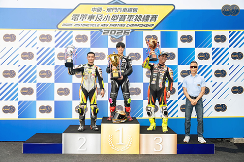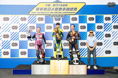 ◎ 中國澳門汽車總會電單車及小型賽車錦標賽昨日各組頒獎。